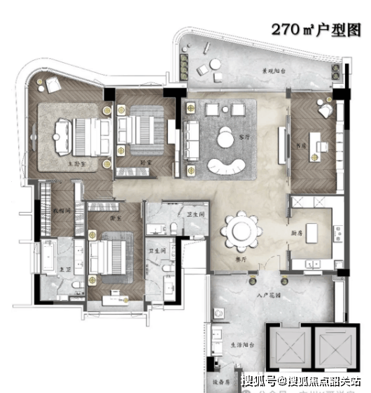 在售产品:140-270㎡四房双主套大平层、285-437㎡叠墅