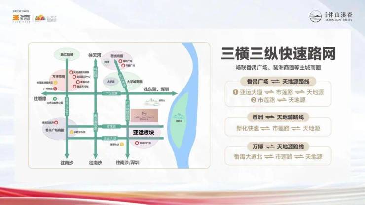 天地源·伴山溪谷位于广州番禺亚运板块,该区域是近年来广州重点发展的片区之一,具备较好的规划基础与发展潜力。亚运板块依托大型赛事遗留资源与城市更新项目,逐步形成集居住、产业与商业于一体的综合区域。