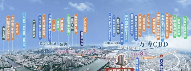 资产价值的基石,在于其对顶级城市资源与稀缺自然资源的占有。保利滨江和著的首要禀赋,在于其占据了广州城市发展最具动能板块的“近享”位置,并同时拥有不可再生的“江景”资源。项目地处番禺大石板块,与如火如荼的万博CBD核心区咫尺之遥。万博商务区作为广州“十四五”规划定位的世界级商圈,已汇聚九大商业综合体、超7200家企业、每日超百万的高端商务与消费人流。这意味着,从项目出发,约10分钟车程即可融入这片繁华鼎盛的都市心脏,享受其顶级的商业、文化、就业与社交资源,充分分享板块的经济活力与发展红利。