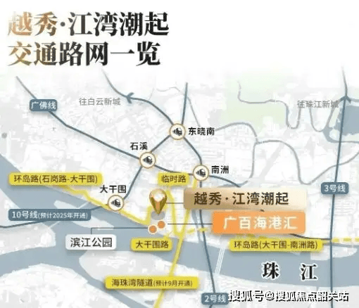 地铁10号线:2026年通车后,从大干围站出发,3站到琶洲(约10分钟)、5站到珠江新城(约15分钟),通勤效率碾压多数竞品;