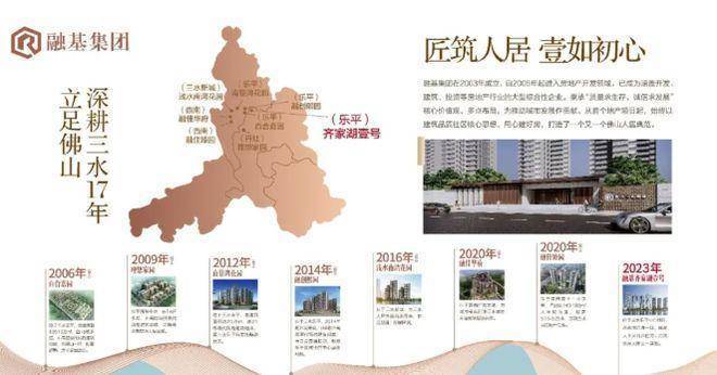 融基・齐家湖壹号由深耕三水 17 年的融基集团倾力打造。自 2006 年进驻三水区乐平镇,融基集团凭借雄厚资金与丰富的豪宅开发经验,成功打造多个优质住宅小区,品牌实力备受认可。