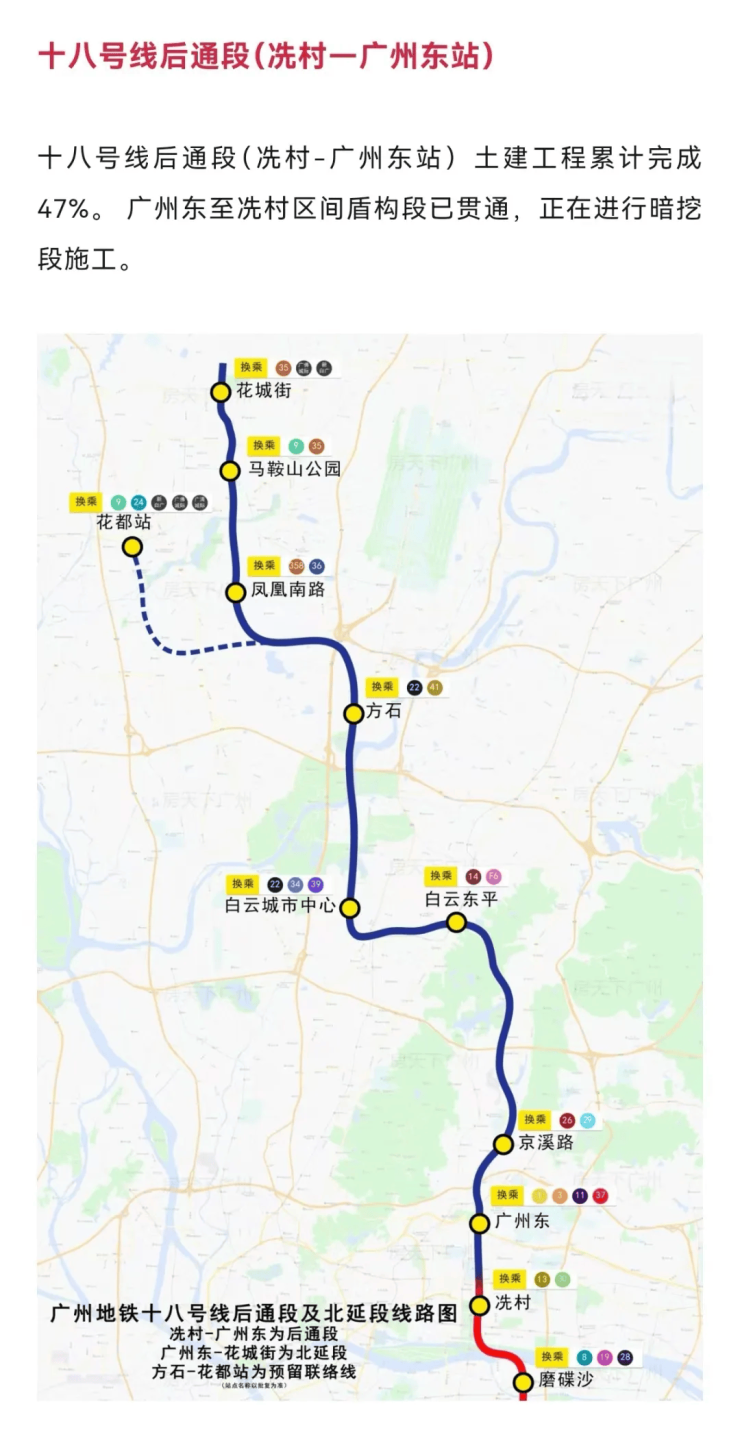除现有地铁线路外,项目还享受多条规划交通线路的红利。在建中的18号线北延段,未来可在白云东平站与14号线交汇,换乘7站即可抵达冼村站,直达珠江新城核心商务区,大幅缩短通勤时间。城轨方面,可乘坐地铁至竹料站换乘广佛环线与新白广城轨,其中广佛环线目前全线工程累计完成93%,未来通车后3站可到天河智慧城,5站抵达琶洲,畅达东部科创核心区。