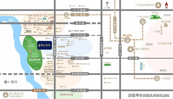 轨道交通:项目距离地铁4号线三水北站直线距离仅800米,实测步行约10分钟。该线路串联佛山五区,直达广州南站,是广佛同城的重要枢纽。
