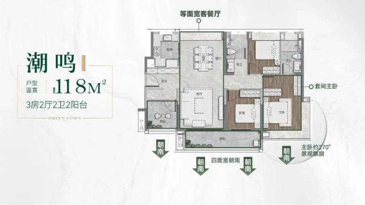 其中,约100㎡的两房两厅两卫三阳台户型,以高得房率与通透格局著称,三阳台设计巧妙引入自然光与清风,兼顾实用与诗意;约118㎡的三房两厅两卫两阳台户型,则通过科学动线与功能分区,实现三代同堂的和谐共处;而约140㎡的大三房产品,不仅拥有阔绰主卧套房与双阳台配置,更在空间尺度与私密性上全面升级,彰显改善型人居的尊崇感。