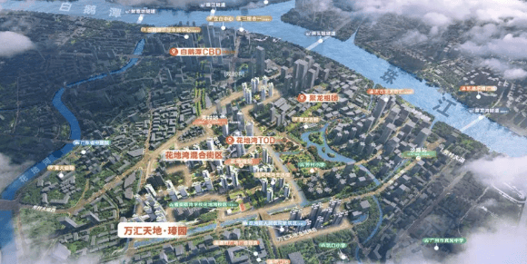 万汇天地·瑧园落子荔湾花地湾,占据白鹅潭商务区核心腹地。这里是国家战略支点、粤港澳大湾区极点辐射三大都市圈的重要门户。项目所在的花地湾板块,与白鹅潭核心区、聚龙组团共同构成珠江西岸“CAZ黄金三极”,半径约2公里内集聚城市最前沿的发展动能。