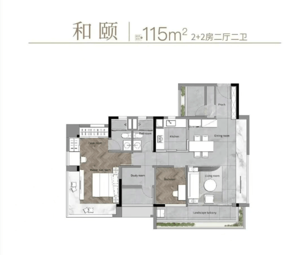 115平方米:东南向,南北对流设计,总价约560-620万元。