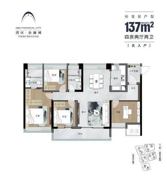 135㎡4+1室2厅2卫(南朝向)—— 墅质平层,全能人居