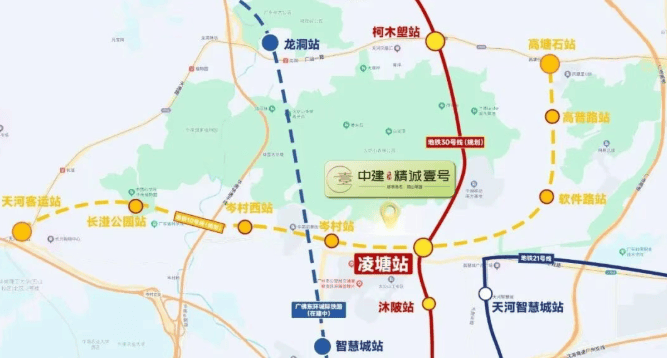 中建天河精诚壹号地理位置优越,交通便利。项目距离地铁21号线天河智慧城站约1.5公里,距离10/30号线交汇站凌塘站约600米。此外,广佛东环线智慧城站也已动工,预计于2025年建成通车。高速公路方面,可快速接驳华南快速干线、广园快速、广州环城高速,畅达广州中心区。