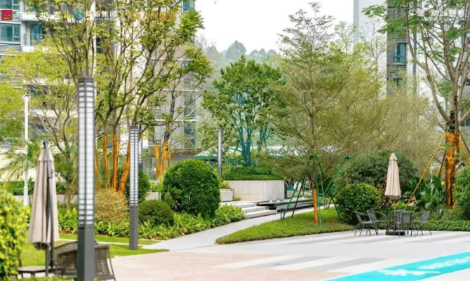 小区采用围合式布局设计,打造12+1层山湖洋房,东西楼距宽约90米以上,前后无遮挡,户户皆有观园景。通过南北两条、东西一条共三条开敞通廊的设计,不仅引入火炉山清新空气,还能让业主在花园内享受山景湖景。同时,项目还缔造了约5400㎡的美学园林,包含架空层泛会所、人文艺术馆及多业态商街等配套设施,为居民提供了丰富的休闲娱乐空间。
