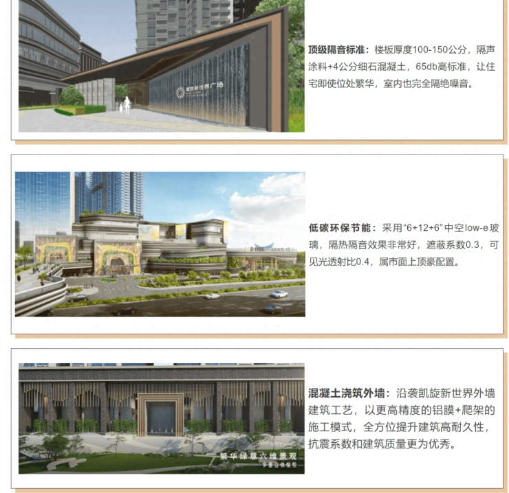 项目内部规划8万㎡高端商业中心DiscoveryPark、甲级写字楼及3万㎡园艺广场,满足购物、娱乐及办公需求。社区引入海绵城市系统及绿色建筑理念,实现雨水循环利用及宜居微气候。住宅采用6+12+6双层中空Low-E玻璃、全屋新风空调系统及高标准隔音楼板,保障室内舒适度与安静环境。