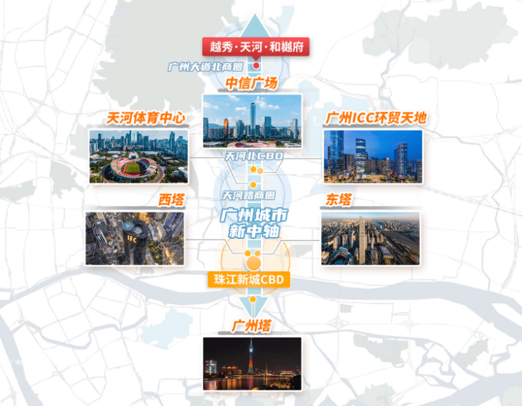 项目位于天河中轴线北端,与珠江新城、金融城形成15分钟生活圈: