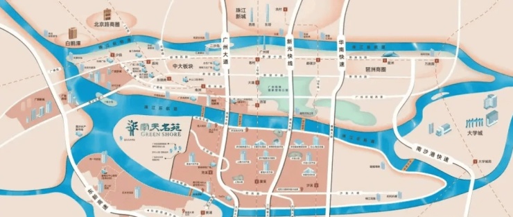 自驾路网:项目紧邻南大干线、东新高速等主干道。自驾出行极为便利,30分钟内即可畅达珠江新城、万博、琶洲三大CBD,1小时内即可覆盖大湾区主要城市。这种高效的通勤能力,让居住在岛居的静谧与都市的繁华完美融合。