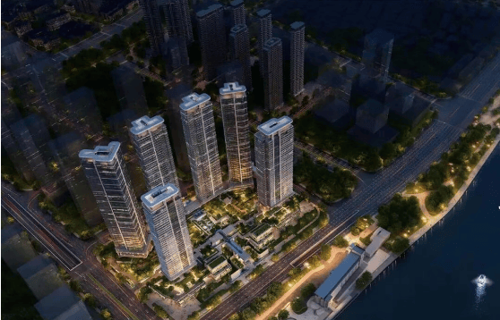 保利・玥玺湾总占地面积约 47000㎡,总建筑面积约 175000㎡,容积率 3.7(低于同区域多数豪宅,如汇悦台容积率 7.09),规划 6 栋住宅(共约 500 户),呈北高南低半月型布局(前排 35-37 层,后排 49-50 层),通过楼栋扭转实现 100% 望江。项目为超新规标杆产品,阳台面积占比达 30%,公共开放空间不计容面积 10%,使用率最高约 130%,远超市场主流豪宅。建筑采用湾流曲线幕墙体系与 9.9 米尊玺塔冠设计,搭配 11 米挑高 “城市浮岛”(含艺术商业街区、空中园林与高端会所),社区通过架空连廊连接各楼栋,通江廊道贯穿全场,打造 “亲江、低密、艺术化” 的世界级滨江作品,尽显顶豪品质。