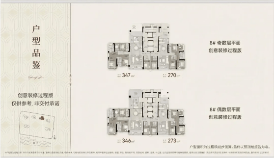 277-348㎡四房 / 五房(6/8 栋,3 梯 2 户):垂直望江户型,大面宽客厅连接景观阳台,可俯瞰无遮挡珠江夜景,配备多套房设计,满足多代同堂的改善需求,空间尺度与私密性兼具。