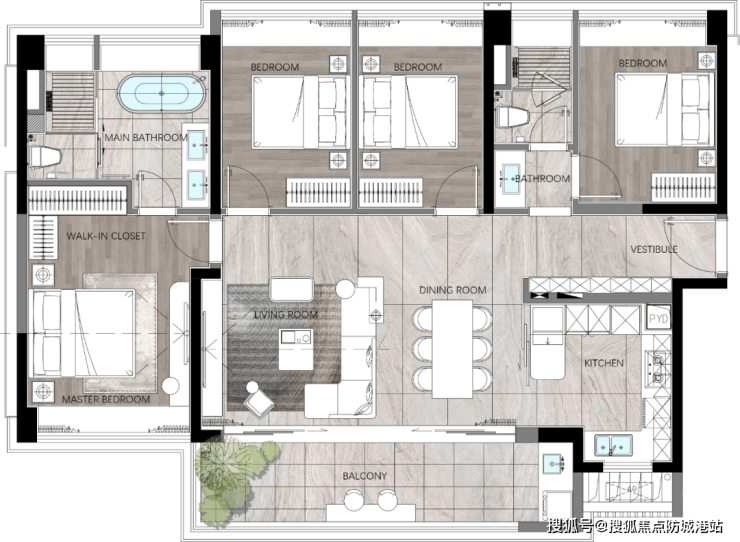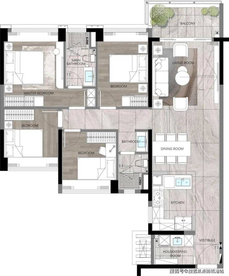 140㎡四房:横厅/竖厅双设计,三面采光,南向阳台18米,总价约950万元起(货量最多)。