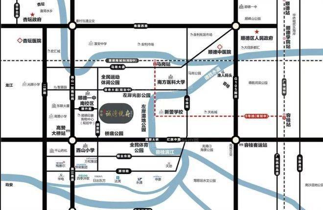 尽管目前轨道交通仍在规划阶段,但中交诚湾悦府已经具备了成熟的路网体系,能够实现高效的出行体验。未来,佛山地铁9号线(马岗站)将进一步提升区域的轨道交通能力;现有的公交线路如389、321路,则可以方便地接驳主干道,连接杏坛及周边镇街。自驾方面,通过百安路、顺业西路等主要道路,可快速到达佛山一环和广佛江珠高速,覆盖广佛核心生活圈。