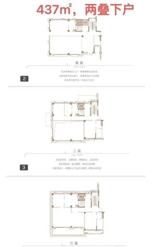下叠面积为305㎡,首首层花园面积区间约为233-517㎡,实用率238-355%;三叠户型最高可做到6房。