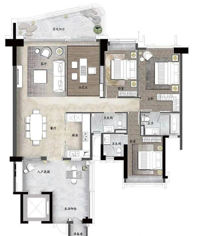 项目户型设计多样且亮点突出。洋房户型为 140㎡ - 270㎡四房双主套,满足不同家庭结构的需求。如 270㎡环幕江景四房的王牌户型,约 9 米超大邮轮式阳台,一线望江无遮挡,专梯专户设计,营造出墅级空中双花园,约 28㎡超大私家庭院增加了生活的趣味性,约 42㎡超大主卧空间搭配 270° 环幕江景以及阔绰双主套房设计,尽显奢华舒适。约 200㎡一线临江环幕大宅,270° 环幕三江视野,独立电梯入户,多功能入户花园,半开放式厨房,双主套房设计,同样展现出高品质的居住体验。叠墅产品更是独具特色,两叠和三叠户型实用率高,花园面积大。两叠上叠面积 392㎡,花园面积区间约为 123 - 298㎡,天台面积约为 93㎡,实用率 193 - 259%;下叠面积 437㎡,花园面积区间约为 357 - 797㎡,实用率 229 - 338%,每个户型均为 4 + 1 房设计,最高可做到 7 房。三叠上叠面积 285㎡,首层花园面积区间约为 27 - 90㎡,天台面积约为 108㎡,实用率达到 178 - 274%;中叠面积 279㎡,首层花园面积区间约为 76 - 223㎡,实用率 122 - 172%;下叠面积 305㎡,首首层花园面积区间约为 233 - 517㎡,实用率 238 - 355%,三叠户型最高可做到 6 房。多样化的户型设计,满足了不同购房者对空间和功能的需求,为业主打造个性化的居住空间。