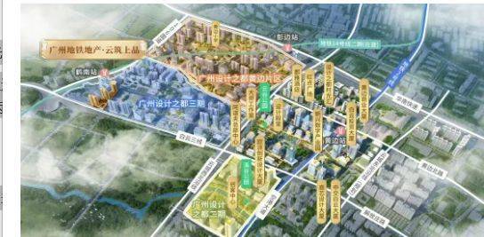 广州地铁・云筑上品位于白云设计之都板块。广州设计之都依托十四五战略规划,体量约为珠江新城的四倍,占据白云新城核心位置,与广州时尚之都共同构建国际交往中心、城市枢纽门户及总部经济聚集区。目前已有超 150 家设计领军企业进驻,2022 年年产值突破 480 亿元,2023 年预计突破 600 亿元,发展前景广阔,有望成为城市发展新极核。
