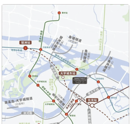 穗莞深城轨琶洲支线(在建):项目紧邻城轨站点,两站直达琶洲,快速通达深圳、东莞等湾区城市;