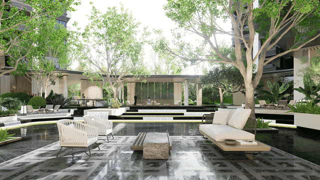 三重归家礼序:外部滨水公园→内部繁花逸园→入户榕悦广场,步步皆景;