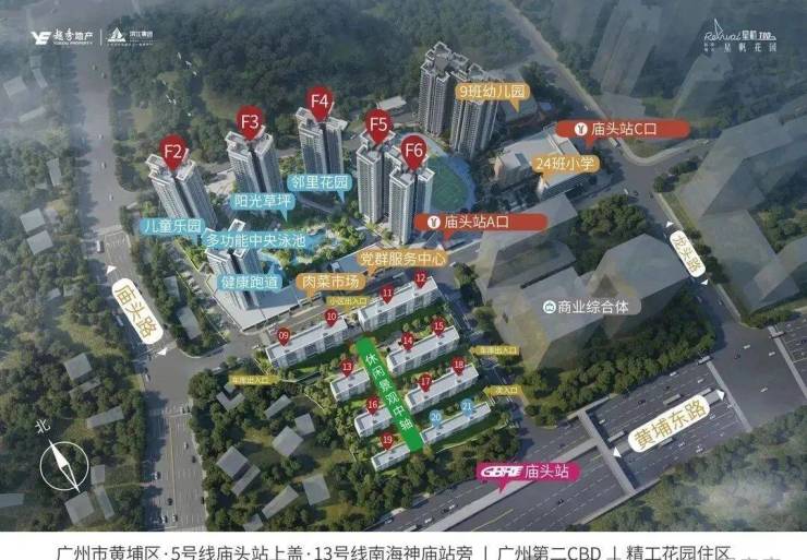 项目位于广州市黄埔区的老黄埔庙头板块,紧邻地铁5号线东延线的庙头站及13号线南海神庙站,形成了双地铁配套,为居民提供了极大的交通便利。