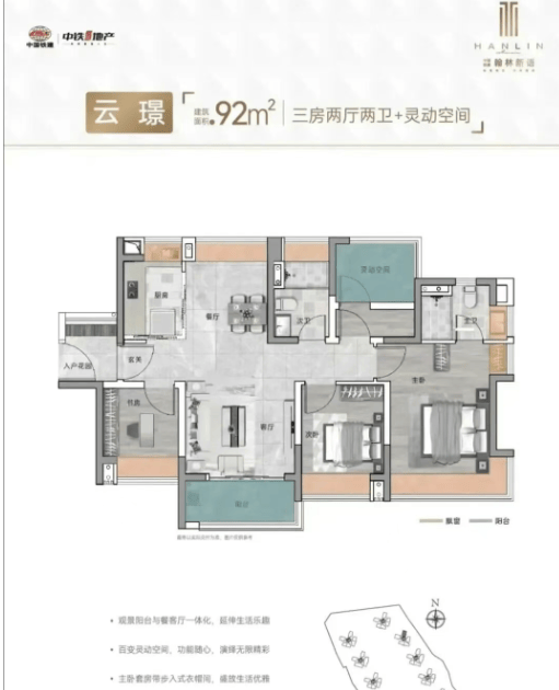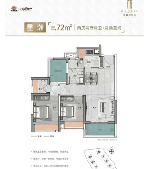 ✅ 72㎡三房两卫+92%得房率,小户型极致实用;