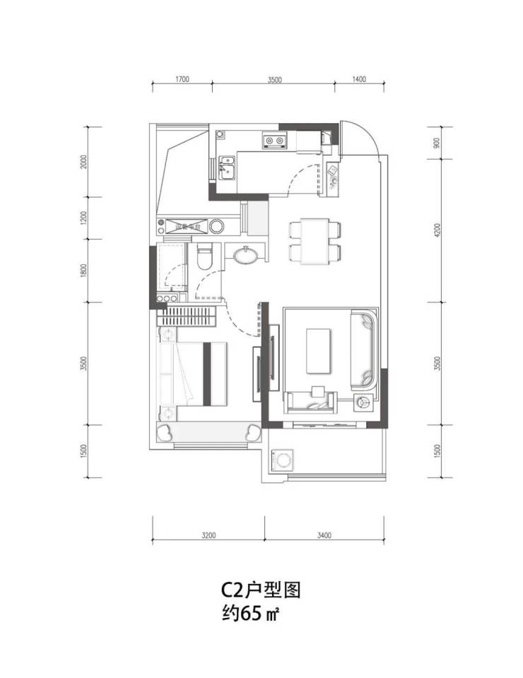 双开间朝南 + 南北通透,卫生间干湿分离,主卧带飘窗,客厅连接观景阳台,空间利用率高,适合单身或二人世界。