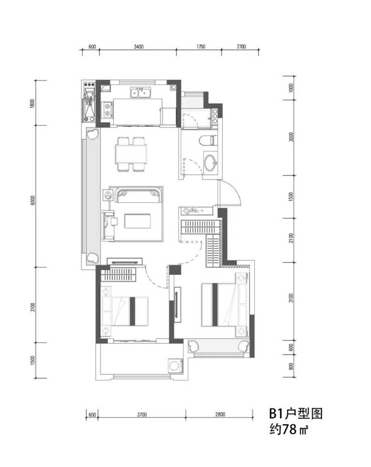 大面宽朝南,全卧室带飘窗,卫生间干湿分离,西侧灵动空间可改书房或次卧,满足三口之家居住需求。