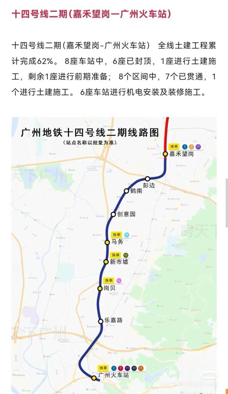 地铁进度:14号线二期鹤南站主体结构已完成,正在进行站内装修及机电安装,与项目接驳的专属通道接口已预留。