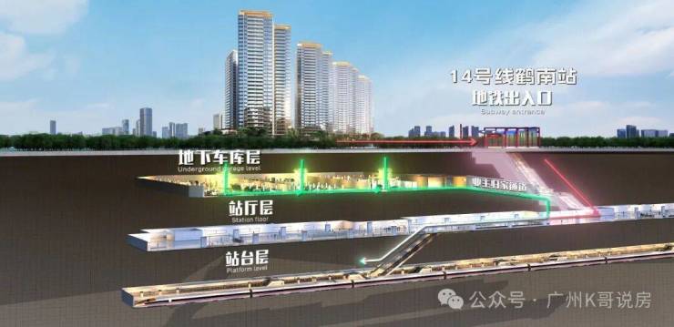 地铁14号线鹤南站(在建):项目A栋地下二层车库大堂,通过专属通道直线距离约200米即可直达鹤南站站厅层,实现“下楼即地铁,无忧归家路”。根据广州市发改委及广州地铁集团最新发布的《2026年第一季度广州市轨道交通工程建设进展通告》,地铁14号线二期(嘉禾望岗-广州火车站)当前土建工程累计完成已超85%,全线预计于2026年底建成通车。通车后,1站直达嘉禾望岗(换乘2、3、14号线),3站直达广州火车站(换乘2、5、11、14号线),迅捷连通全城。