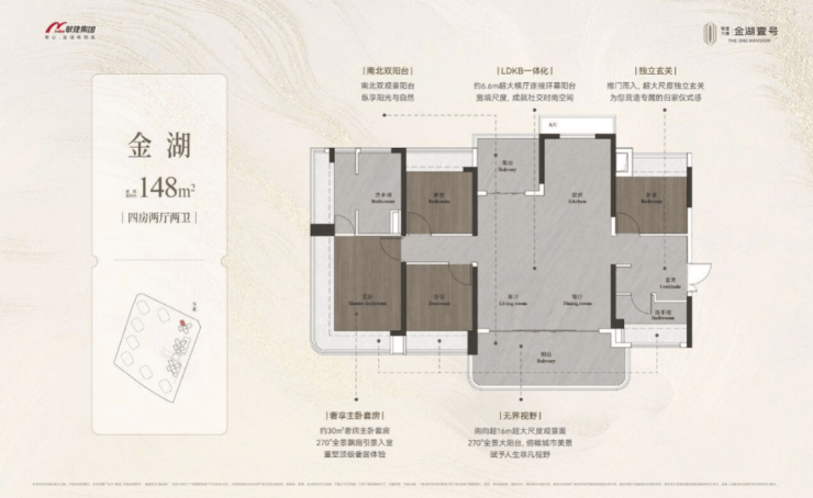 从区位来看,项目占据万博 CBD 辐射圈,享受板块发展红利,交通网络四通八达,畅达全城;从生态来看,1630 亩金山湖文化公园与社区内部中央园林双重加持,居住环境舒适宜人;从配套来看,商业、医疗、教育资源完善,1 公里全能生活圈满足所有需求;从产品来看,98-149㎡全南向四房,得房率高达 110%,刚需改善全覆盖,空间利用率超高;从物业来看,敏捷物业专业护航,居住安心舒适。