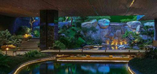 建筑与园林设计:项目采用围合式布局,楼间距最宽处近百米,最大限度保障采光、通风与私密性。中央打造约1.5万平方米的大型园林,其中核心节点为“榕樾山水会客厅”——依托原生十几棵百年大榕树,结合南北地势高差,营造出兼具岭南韵味与现代美学的景观空间。园林内设置登山步道、露天楼梯、屋顶花园等多元动线,实现“步步有景、层层见绿”的沉浸式体验。