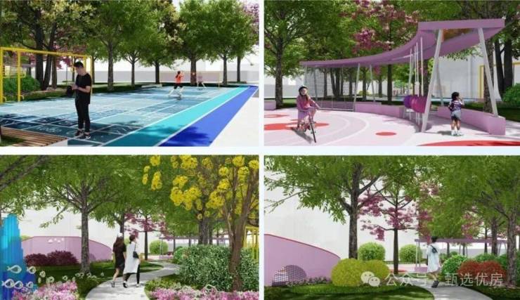中心景观花园:社区内规划有中心景观花园,作为社区的核心景观区域,花园内种植大量的绿植、花卉、灌木、乔木等,打造多层次的绿化景观,四季常青、花香四溢;花园内设置了休闲步道、休息座椅、景观亭等,业主可在花园内散步、休息、观景,享受自然的惬意与宁静,缓解日常的工作与生活压力;同时,中心景观花园也是业主休闲、社交的重要场所,业主可在这里与家人、朋友一起散步、聊天,享受美好的时光。