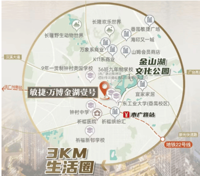敏捷万博金湖壹号距离地铁22号线市广路站仅1公里,步行大约15分钟即可到达。通过22号线,居民可以快速抵达番禺广场及其他主要商圈,通勤便利。此外,项目靠近金山大道和汉溪大道,驾车出行同样方便快捷。尽管上下班高峰期可能会遇到交通拥堵,但总体来说,前往广州各核心城区依旧非常便捷。