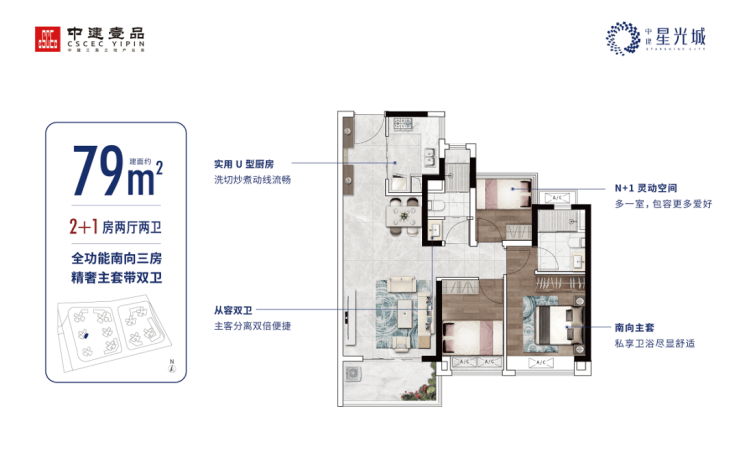 79㎡南向三房,主卧带独立卫生间,区域极高性价比