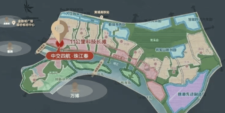 项目位于黄埔区珠江村,地处广州第二CBD黄金走廊,距金融城仅约1公里,经黄埔东路直达天河核心区,是广州东进战略中最先成熟的节点。作为老黄埔旧改中距离天河最近的项目,其区位价值比肩珠江新城,未来将承接金融城、琶洲、鱼珠三大总部经济区的外溢需求。根据广州市规划和自然资源局数据,项目周边3公里内已聚集广州国际港航中心、保利鱼珠港、广汇云报等超100个总部项目,年产值超千亿元,形成“广州东进经济引擎”。