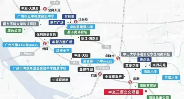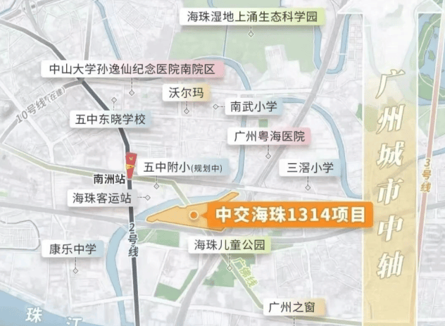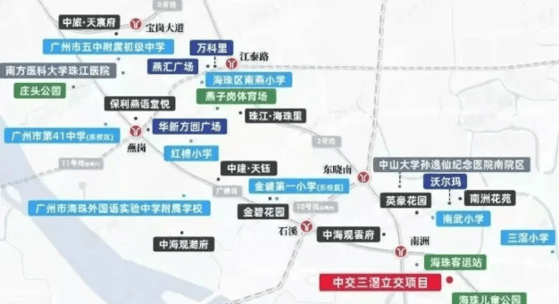 海珠西板块不仅地理位置优越,而且周边配套设施齐全。北瞰广州塔,南望珠江水,居于公园之中,兼具江景、城景及园景,是真正的宜居之地。项目距离地铁2号线和广佛线交汇的南洲站仅约500米,自驾出行则可通过广州绕城高速和广州大道,交通便利。