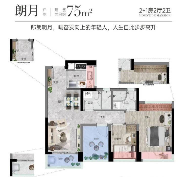 产品概况:建面约75-120㎡ 臻装三四房 户户双卫