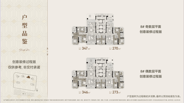 后排4栋超高层:侧看江,最小面积204-350㎡,其中250㎡户型可做到350㎡的套内面积,空间效率领先市场;
