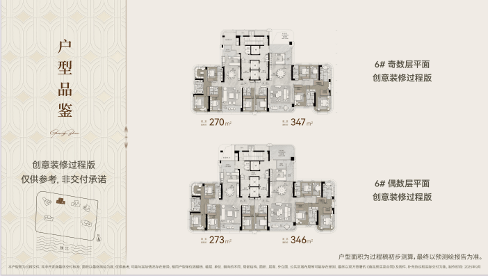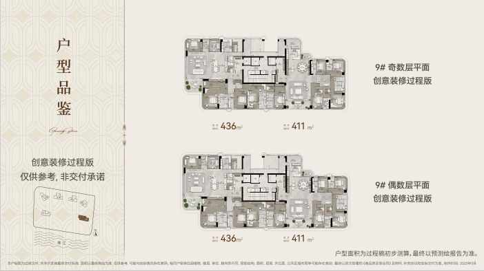 前排2栋楼:正望江,规划为640㎡左右的大平层,一层一户,货量不到50套,套均总价预计超1亿元,标配私家泳池;