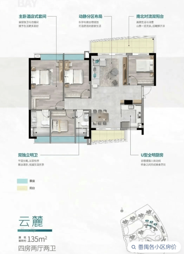 6/7/8栋:20层高,2梯3户,主推135㎡、136㎡、154㎡阔绰四房。