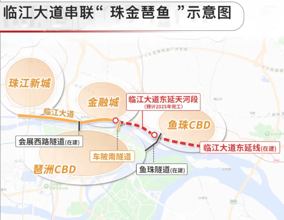 临江大道东延线计划于2025年全线贯通,届时将彻底打通珠江沿岸经济带;鱼珠湾隧道敞开段底板工程已于去年底完工,预计2025年下半年通车,大幅缩短鱼珠与金融城、琶洲的通行时间。更值得期待的是,琶洲与珠江新城、琶洲与鱼珠之间的过江隧道也在规划推进中,未来“一江两岸”将真正实现物理与功能上的无缝缝合。