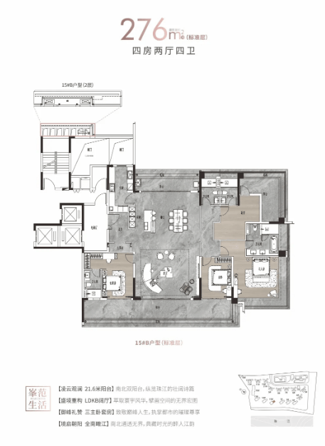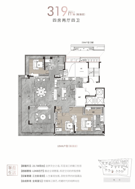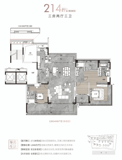 项目提供从125平方米到313平方米不等的户型,所有房源都采用了南向望江的设计,确保居住者能够享受到最佳的景观视野。其中,使用率高达103%,使得每户都能充分利用空间。