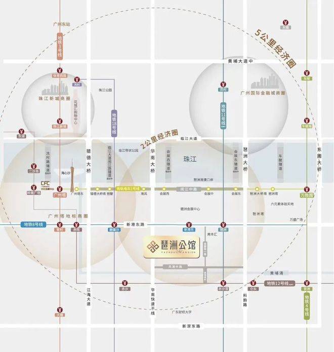 交通网络堪称立体枢纽。地铁8号线新港东站近在咫尺,4号线、3号线也在附近,未来11号线和12号线建成后将进一步加密路网。华南快速、新光快速、环城高速无缝接入,猎德大桥、琶洲大桥、华南大桥提供多条过江通道。广深城际、广佛环线、穗莞深城际等轨道交通正在推进,琶洲港澳码头让跨境商务更便捷。无论日常通勤还是连接大湾区其他城市,都非常高效。