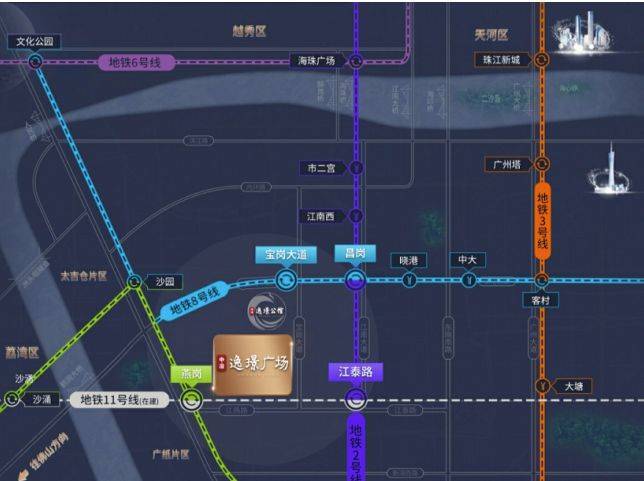 交通便利性是一大亮点。紧邻 2 号线、8 号线、广佛线以及在建的 11 号线,四条地铁线路,让出行选择多多。三横(昌岗路,江燕路,环城高速)五纵(江南大道、宝岗大道、工业大道、广州大道、东晓路)构成立体交通路网,轻松连接广州各城区。约 30 分钟就能畅达广州南站与珠江新城,约 60 分钟可抵达白云机场,无论是出差、旅游还是日常通勤,都十分便捷。