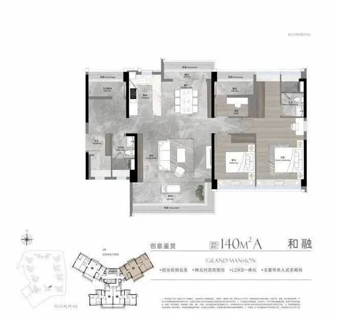 140㎡四房:被称为“南向IMAX宽幕央座”,南向面宽开阔,视野通透;