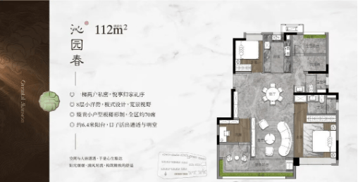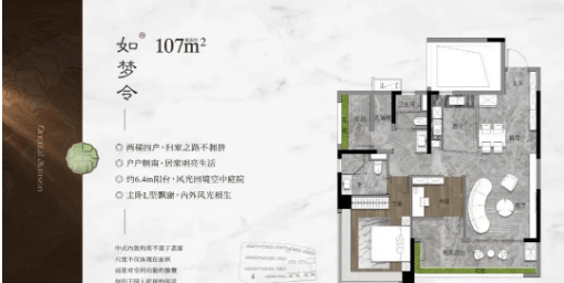 107㎡三房两厅两卫:南北通透,全明户型,LDKG一体化设计,双面宽阳台。