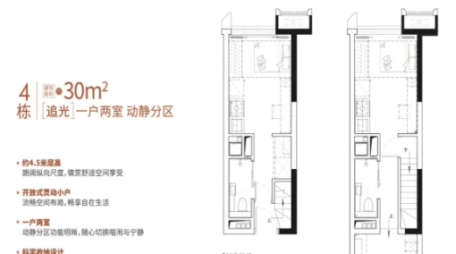 30㎡单间:适合单身青年或投资出租,LOFT设计提升空间感;