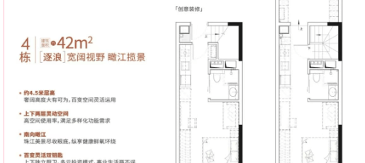 金沙大都汇二期产品主打4.5米层高,部分单位采用复式中空或双钥匙设计,通过垂直空间利用,实现“买一层得两层”的视觉与功能效果。例如,30㎡可做成LOFT单间,60㎡可分割为上下两层,兼顾居住与办公需求。户型朝向多样,42㎡、84㎡主力户型多为东南、西南或东北向,部分高层单位可享一线东江景视野,推窗见水,景观资源稀缺。社区规划4栋19层与2栋28层住宅,采用7梯34–37户高密度布局,虽牺牲部分私密性,但换来了极低的总价门槛,契合投资与刚需定位。